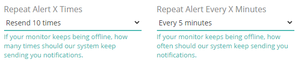 You can configure repeated alerts in case of an outage, so you can be absolutely sure that you'll never miss that initial alert. Our platform will keep nagging you with alerts until you acknowledge the outage by placing the monitor under maintenance mode, or until the outage is over.