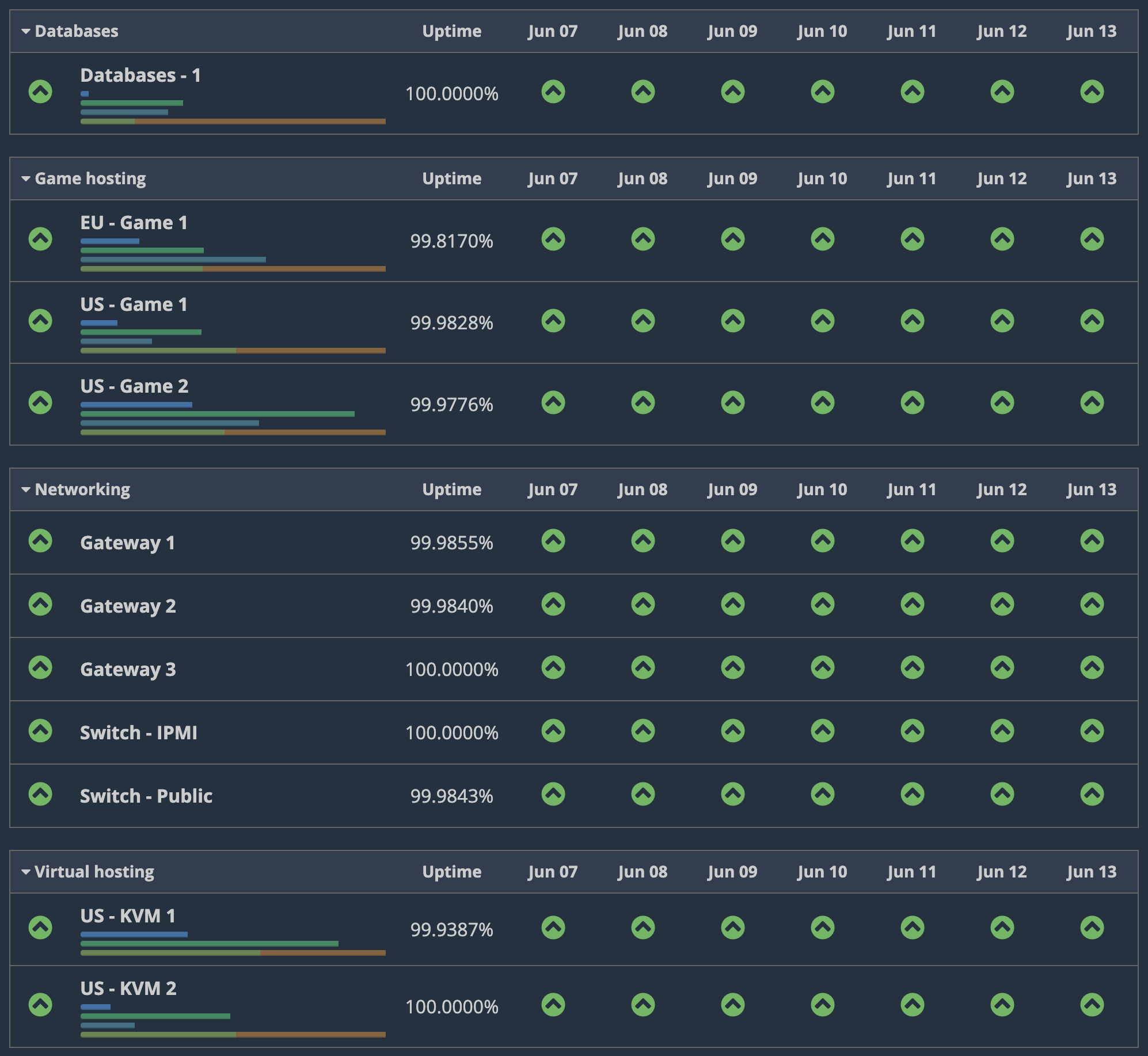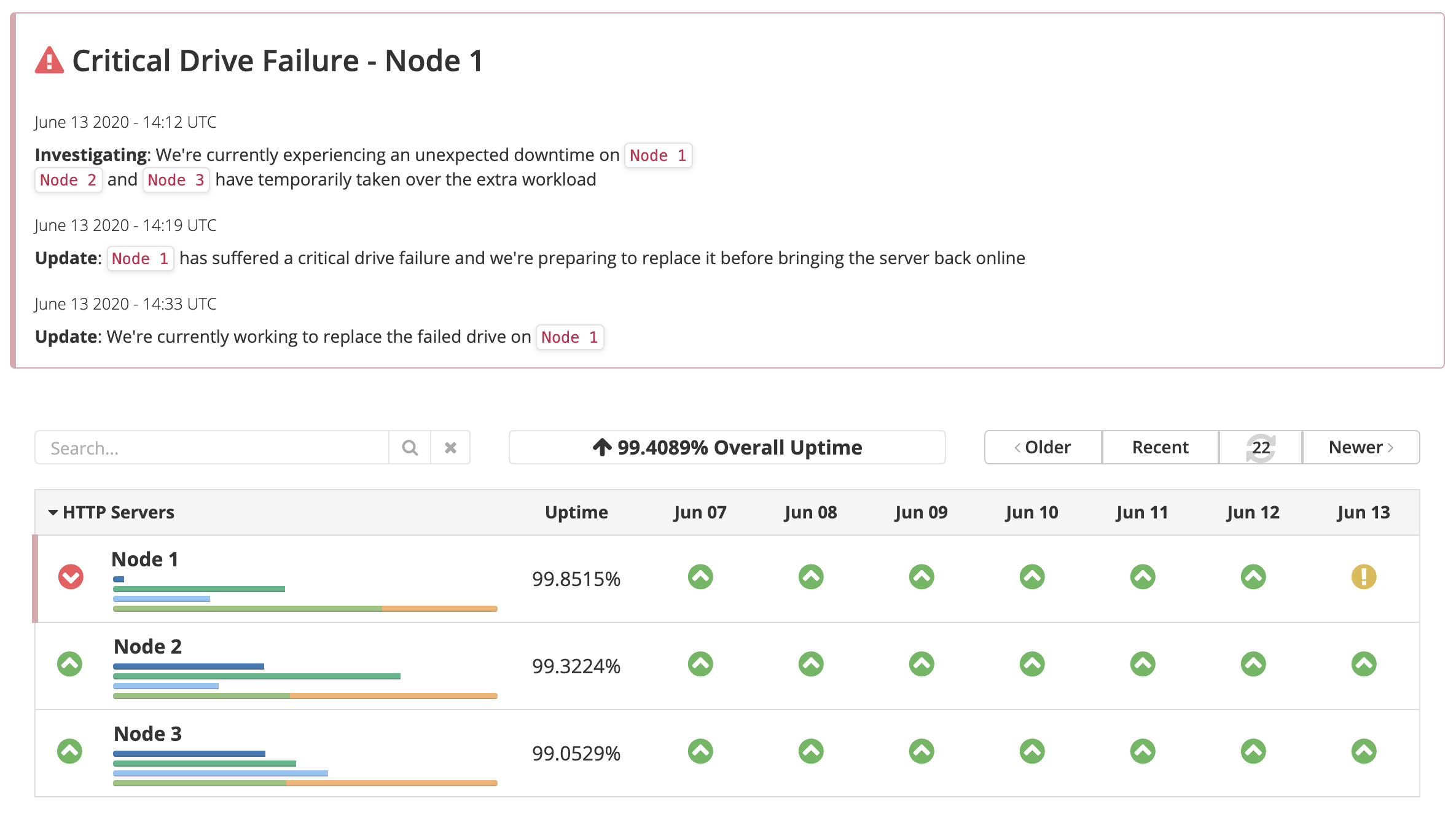 Although we are mostly using it for our clients to see, it's been very useful internally amongst our team too. We love how it also allows us to change the status message at the top at a moments notice very quickly if something went wrong i.e. one of our servers went offline, scheduled maintenance etc.