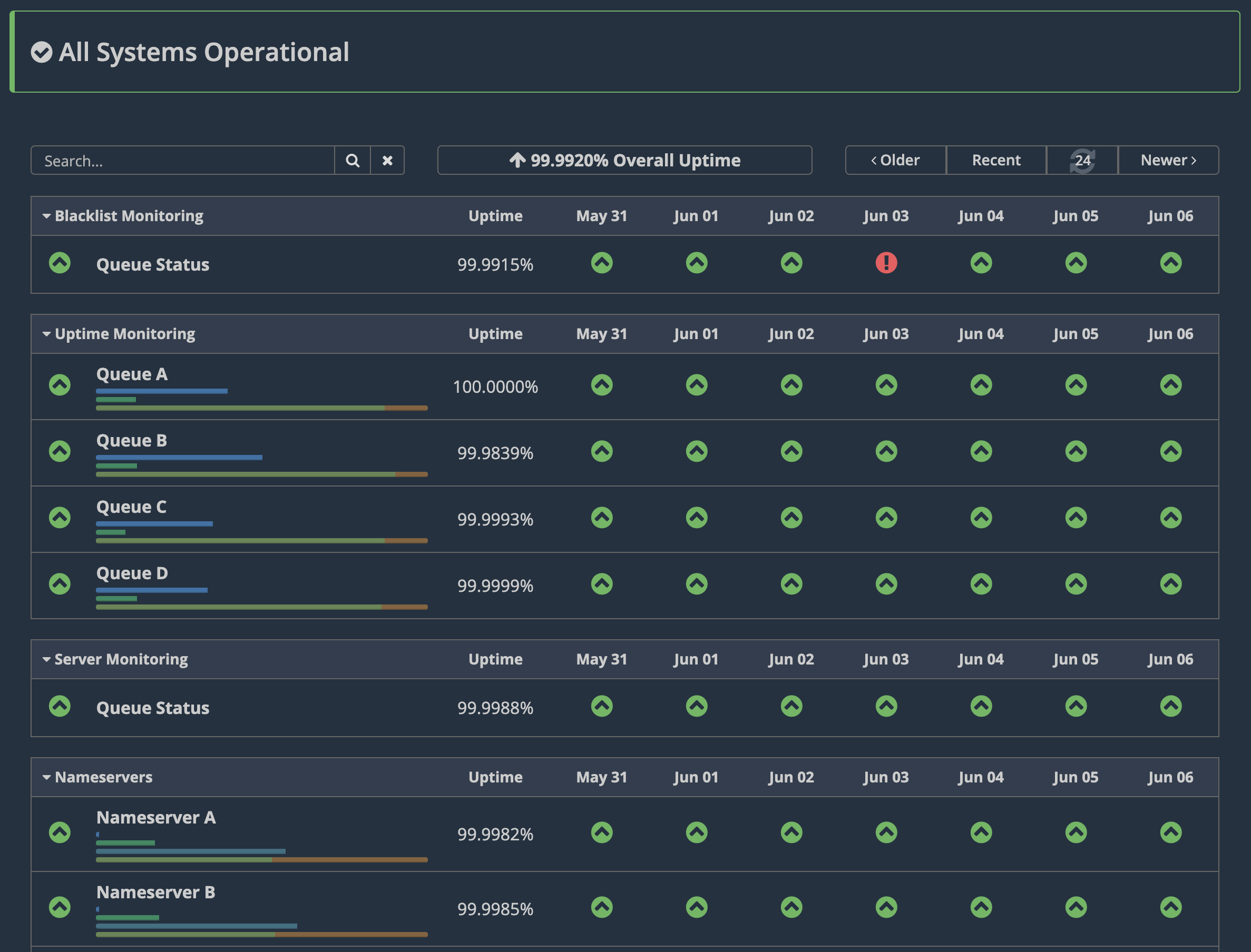 Both our employees and customers derive value from the clean and simple public status page in order to troubleshoot issues and identify potential problems.