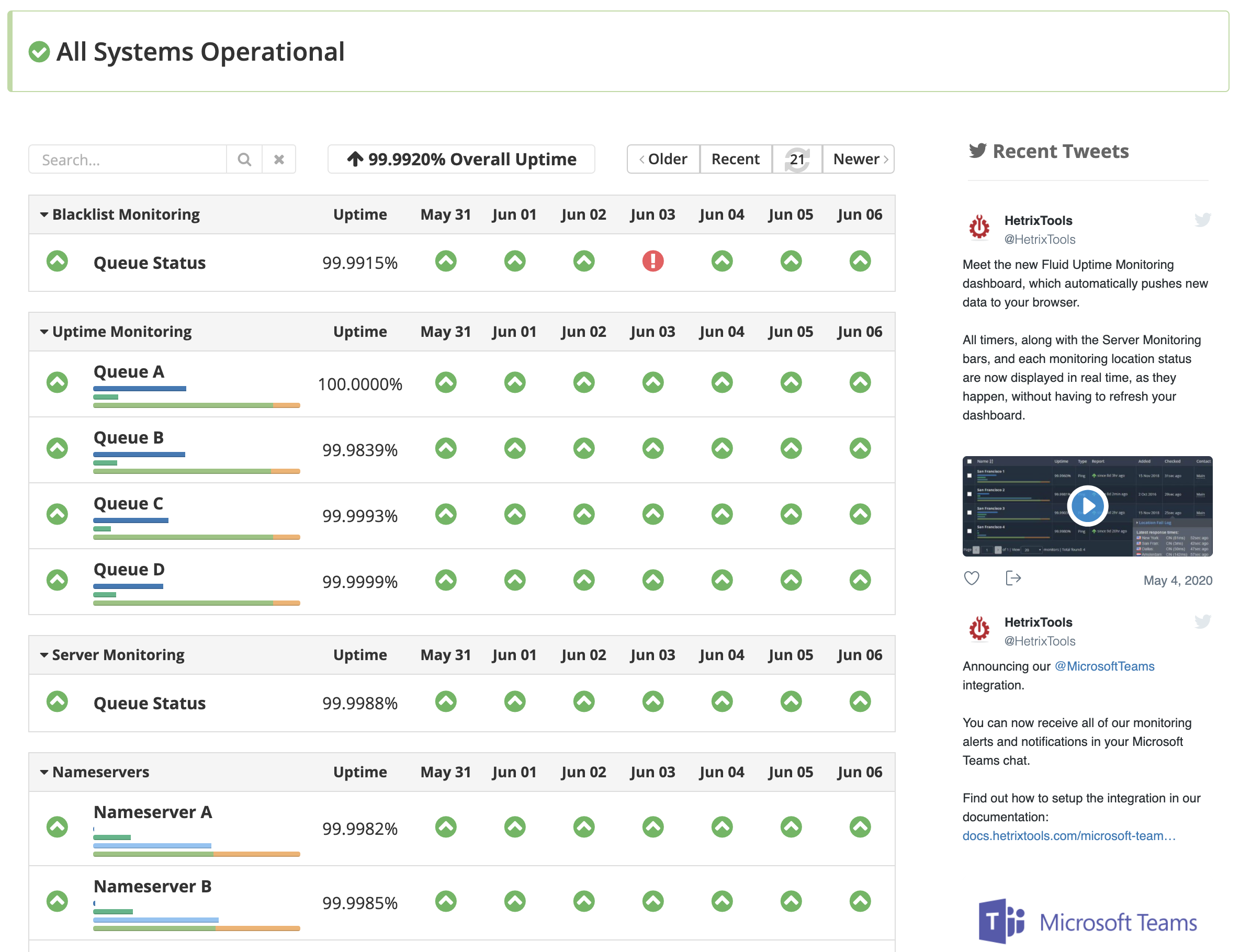HetrixTools has been nothing short of excellent. It's continually developed and improved upon, quickly reacts to changes and notifies our staff of any discrepancies. The API works great as well, and the service is affordable beyond belief compared to what it offers. Keep it up!